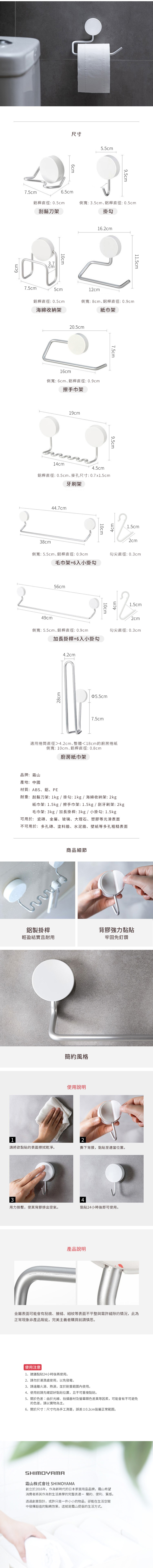 耐重:[毛巾架]3kg、[掛勾]1.5kg