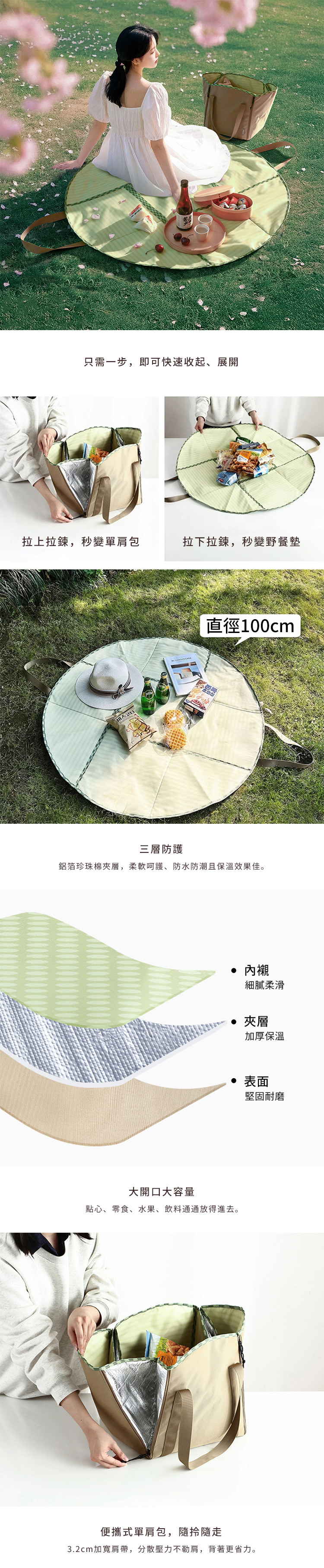 尺寸:[單肩包]長30×寬30×高33cm,(含背帶高56cm)、[野餐墊]直徑(不含背帶)100cm