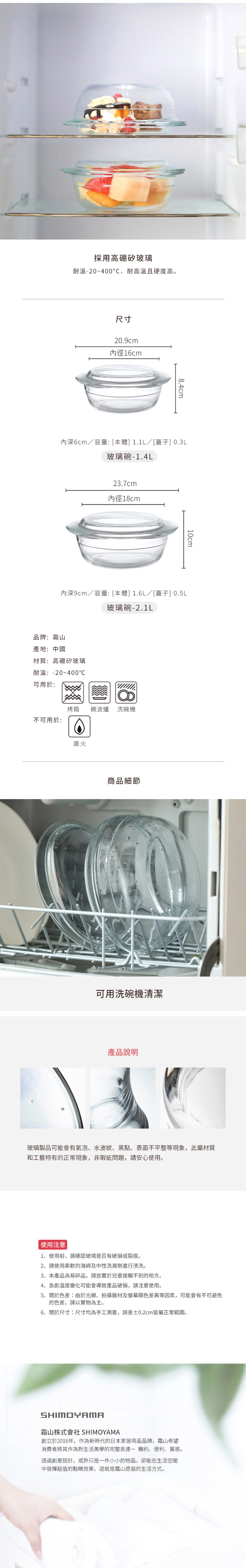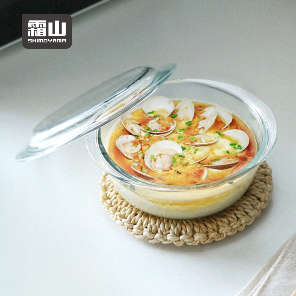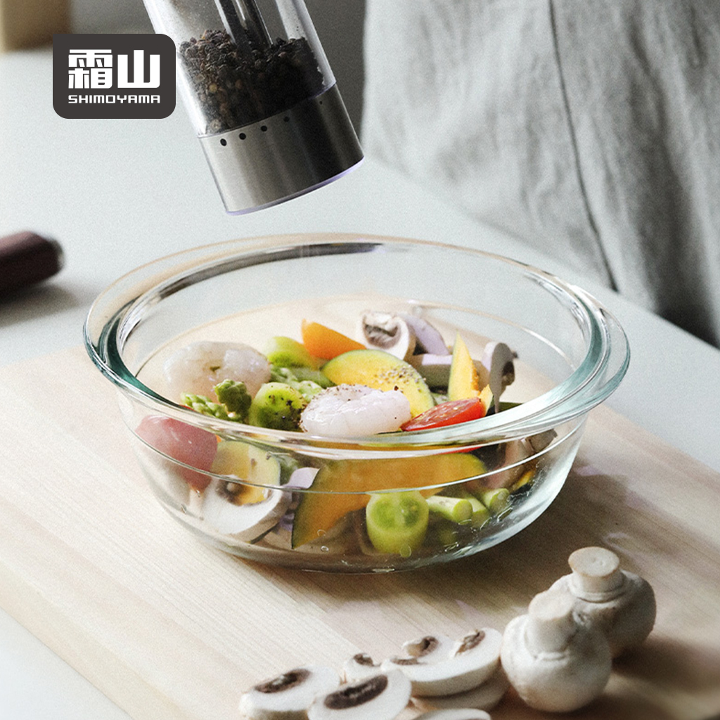 【日本霜山】多功能耐熱玻璃調理碗(附蓋)-1.4L