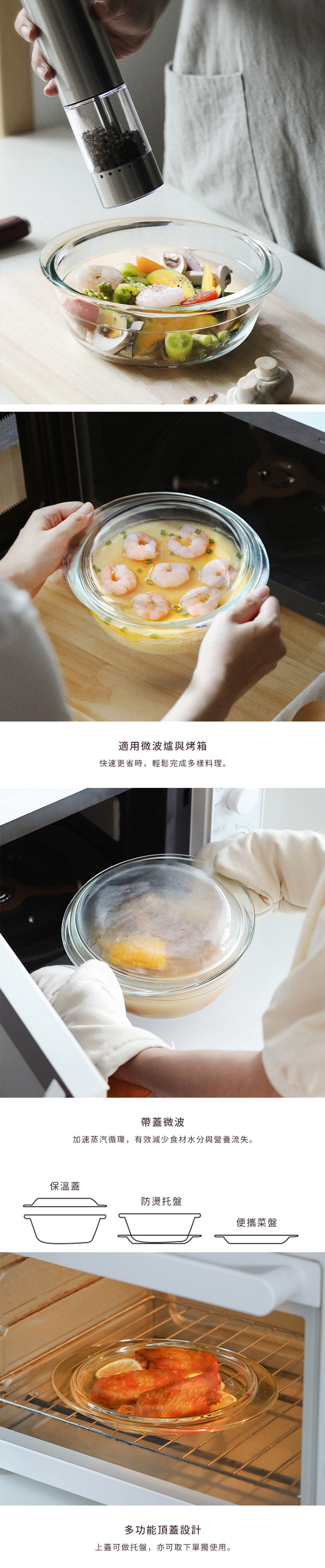 .多功能上蓋,可用做托盤或菜盤