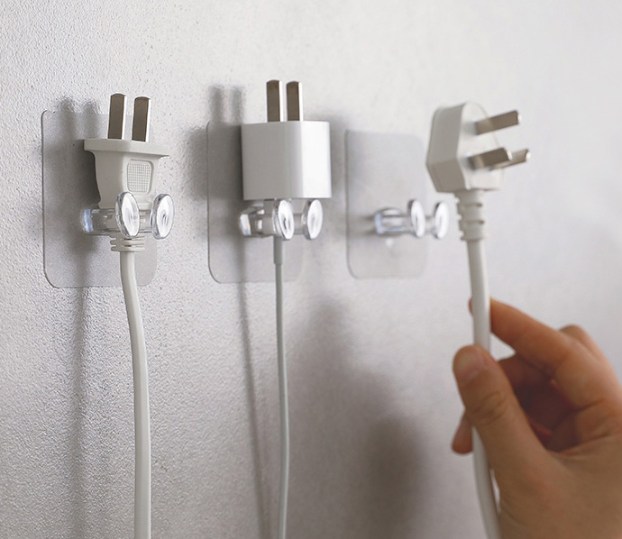【日本霜山】免鑽釘無痕多用途插頭掛勾固定器-6入