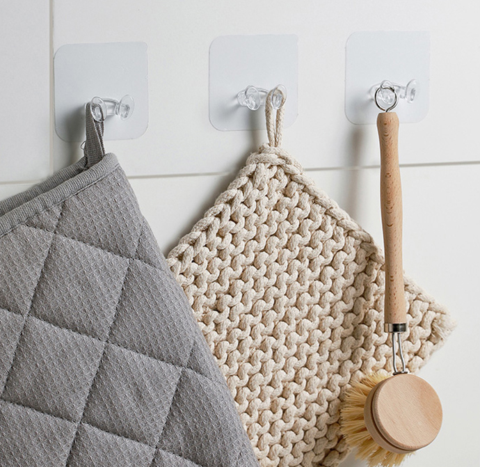 ②待牆面晾乾後,平整掛鉤貼,按壓1–2分鐘。