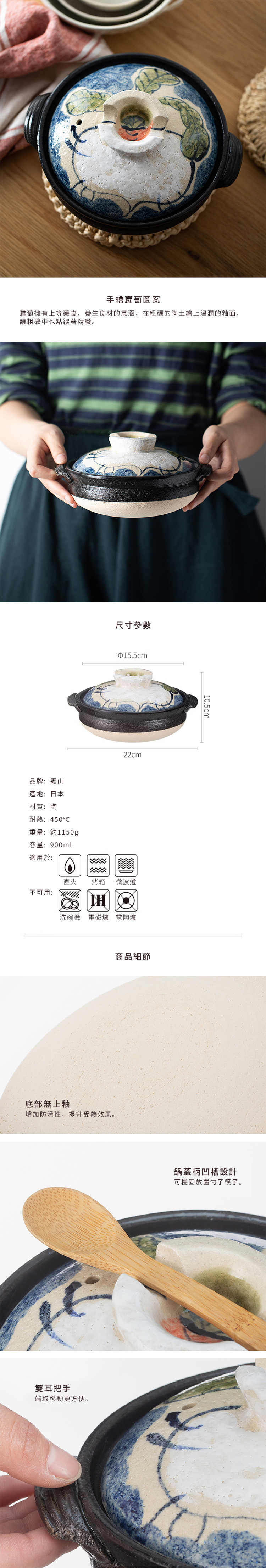 尺寸:寬22×直徑15.5×高10.5cm(包含鍋蓋)