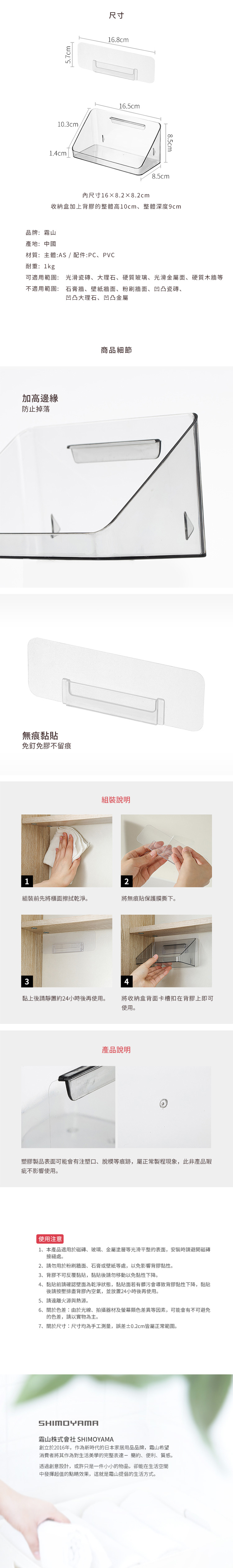 尺寸:[收納盒]寬16.5×深8.5×8.5cm、[內尺寸]×寬16×深8.2×高8.2cm、[壁掛貼]長16.8×寬5.7cm