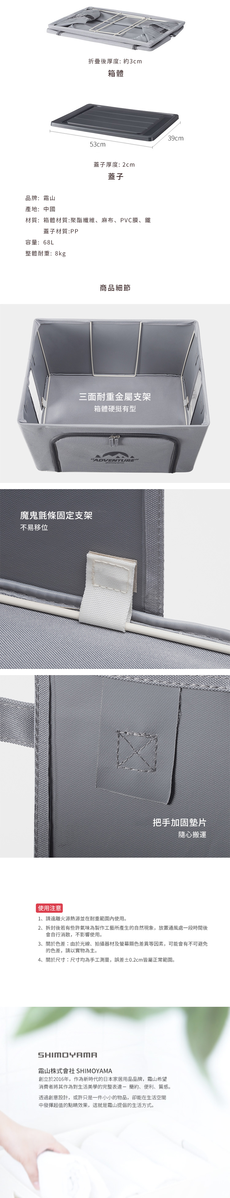 尺寸:[箱體]長52×寬37×高32.6cm、[盒蓋]長53×寬39×高2cm、[折疊]3cm