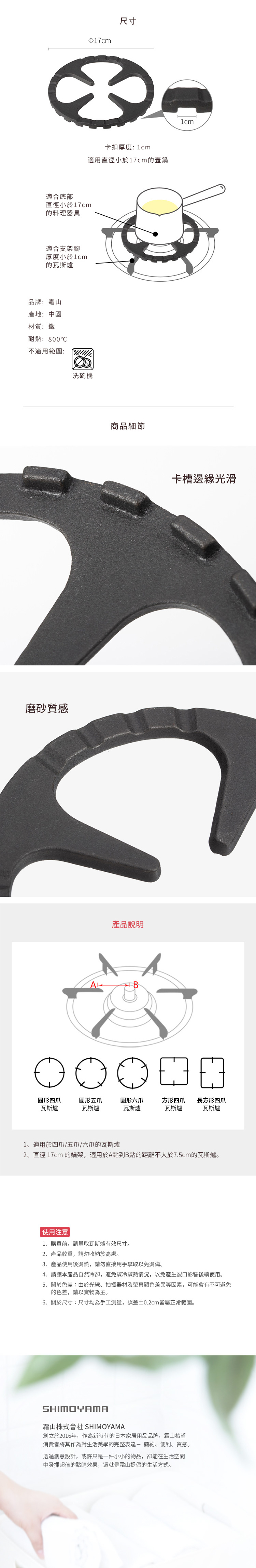 適用於:壺鍋(直徑<17cm)、爐架支腳(<1cm)