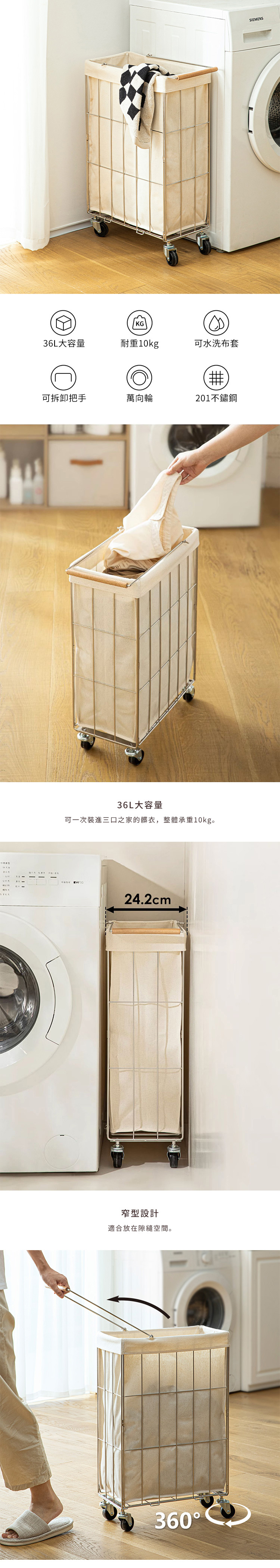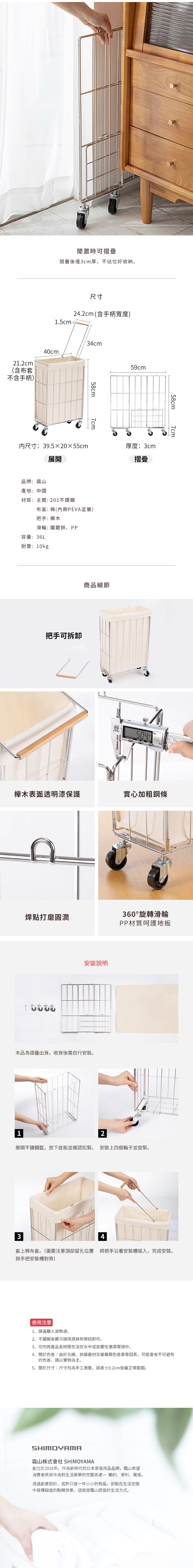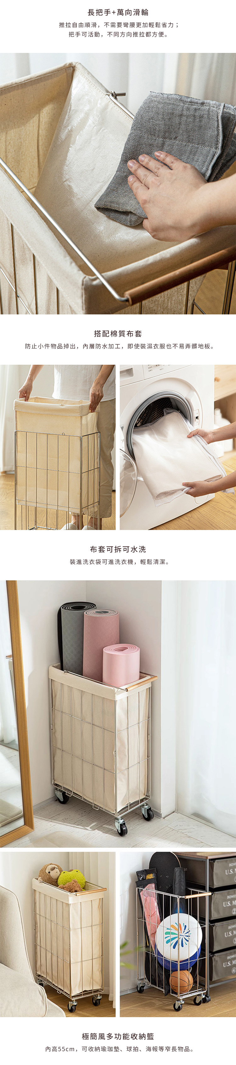 材質:[主體]201不鏽鋼、[布套]棉(內側PEVA塗層)、[把手]櫸木、[滑輪]鐵鍍鋅、PP