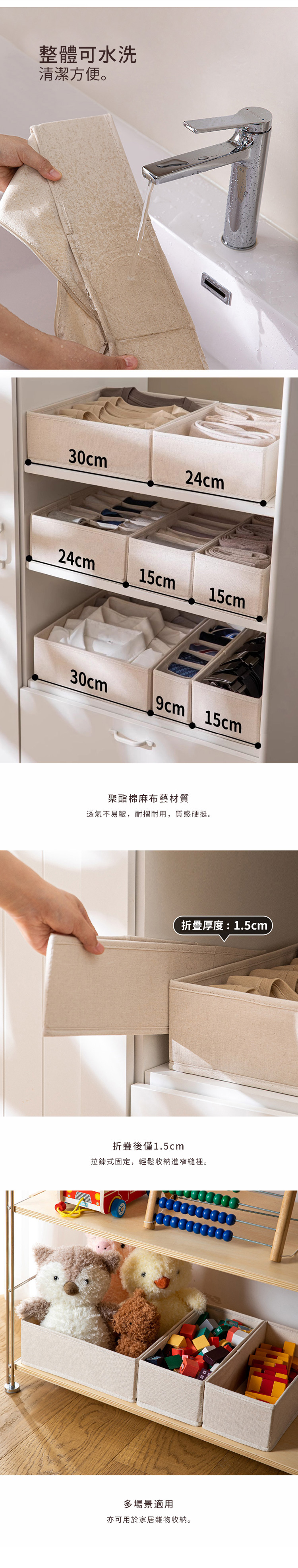 材質:[表布]聚酯棉麻混紡、[四周襯板]PP板、[透明分格網]聚酯纖維