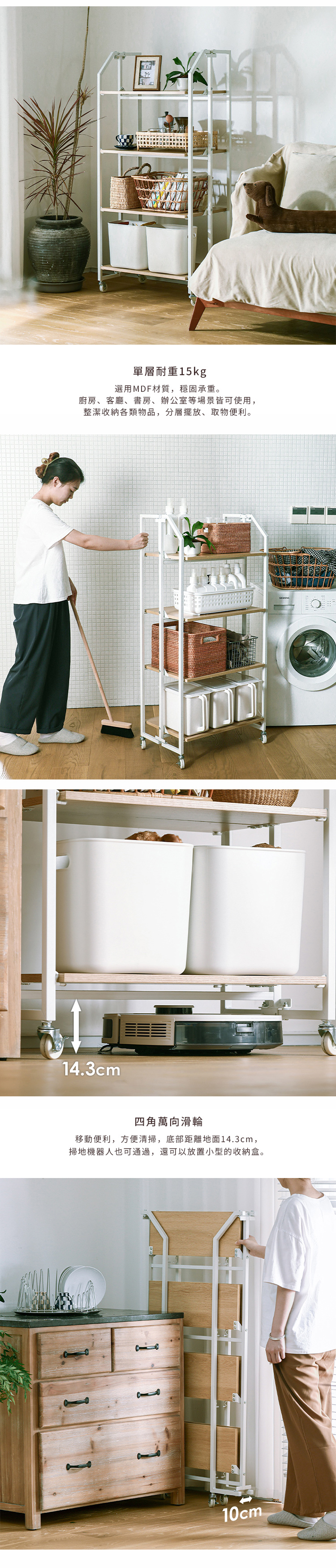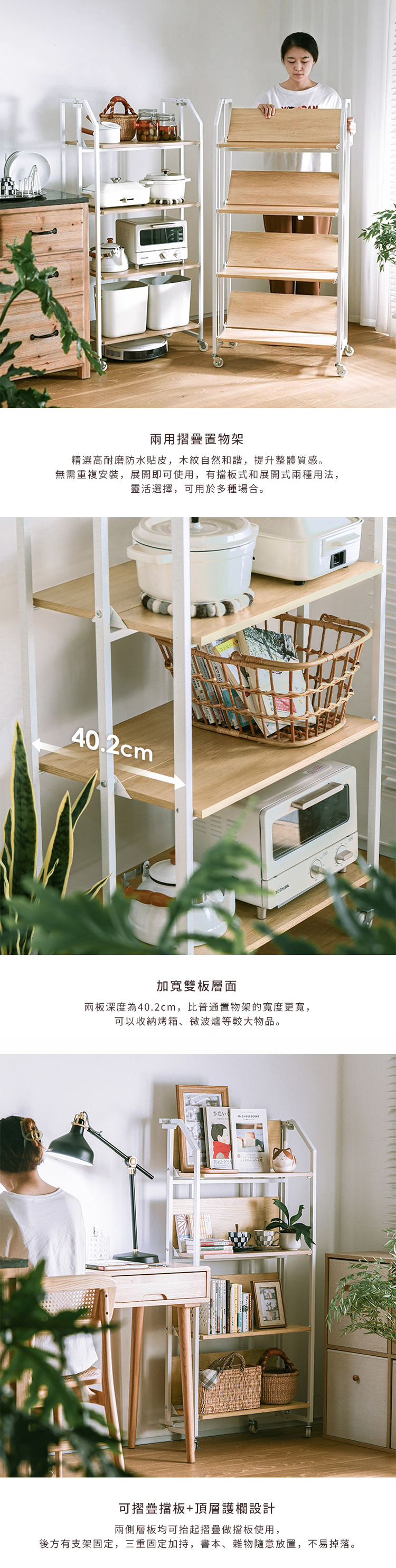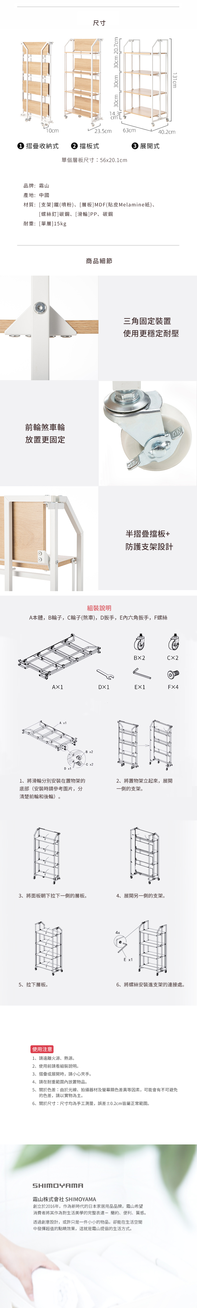尺寸:[展開]寬63x深40.2x(含滑輪)高131cm、[摺疊]長63x寬10x(含滑輪)高131cm、[層板]寬56x深20.1cm