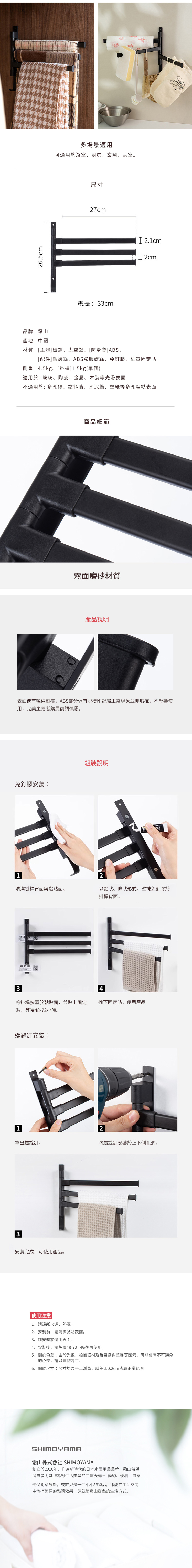 材質:[主體]碳鋼、太空鋁、[防滑套]ABS、[配件]鐵螺絲、ABS膨脹螺絲、免釘膠、紙質固定貼