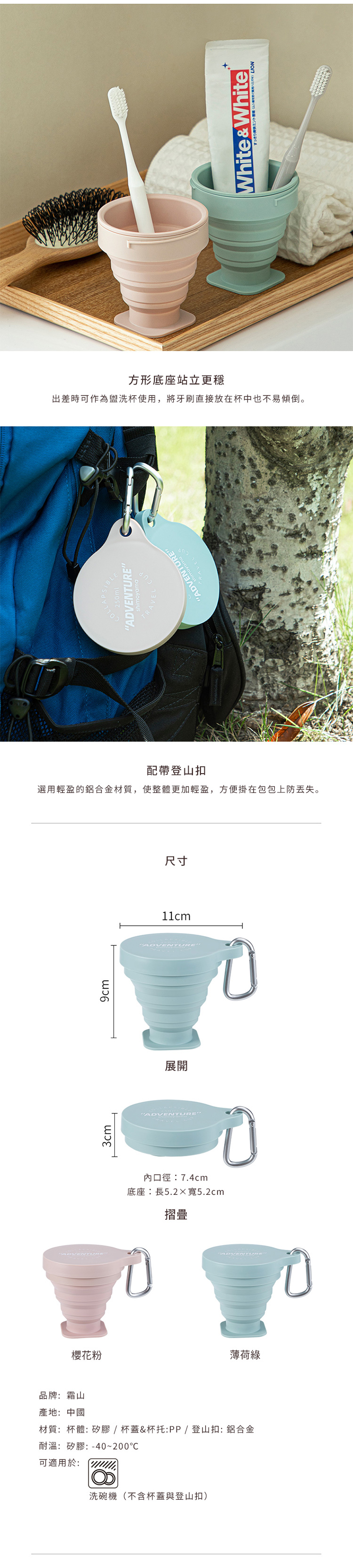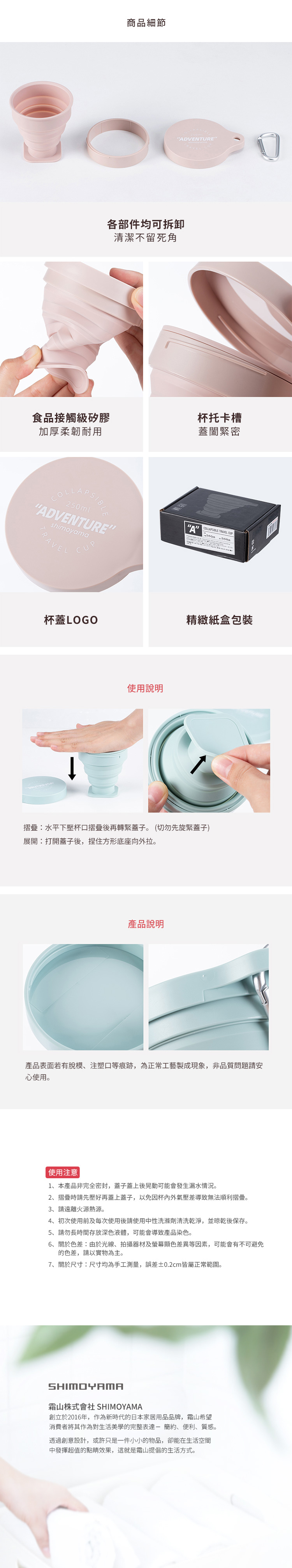 材質:[杯體]矽膠、[杯蓋/杯托]PP、[登山扣]鋁合金