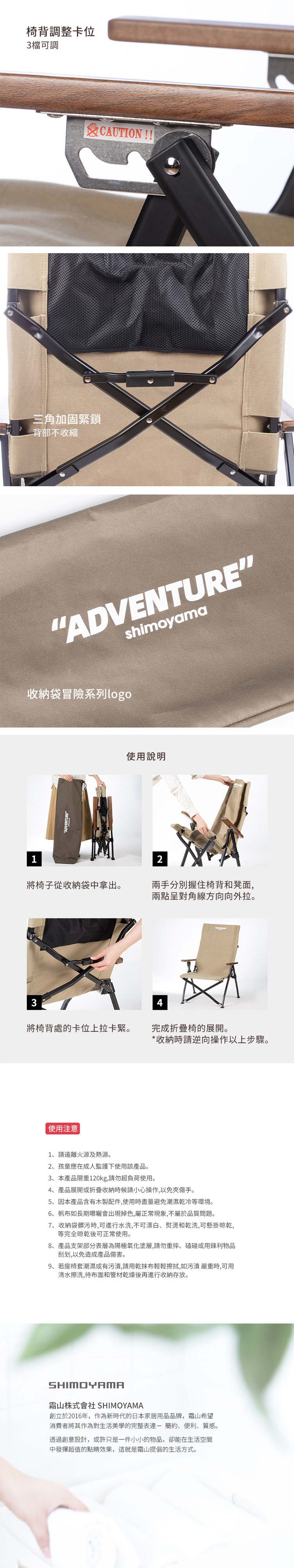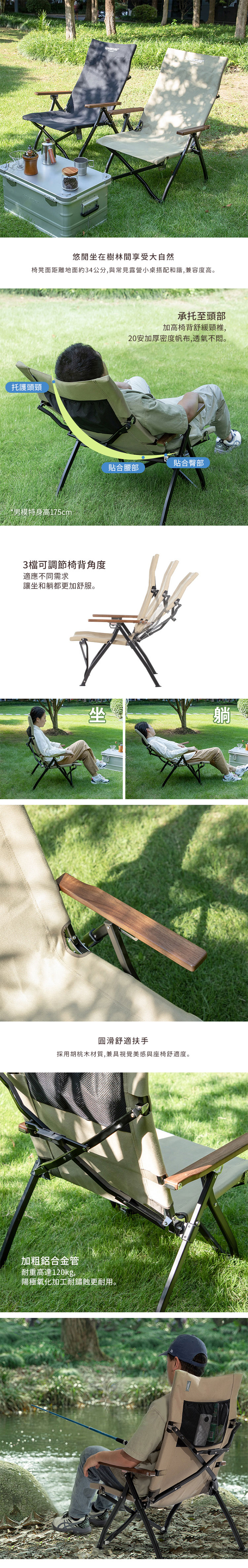 材質:[支架]鋁合金(陽極氧化)、[座椅套]帆布、[扶手]胡桃木、[收納袋]牛津布、聚酯纖維(提把)