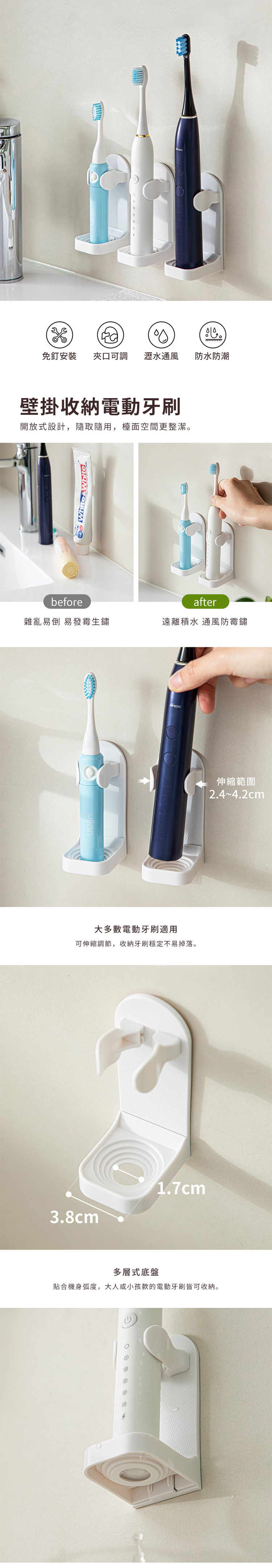 適用於:手柄底徑1.7~3.8cm的電動牙刷