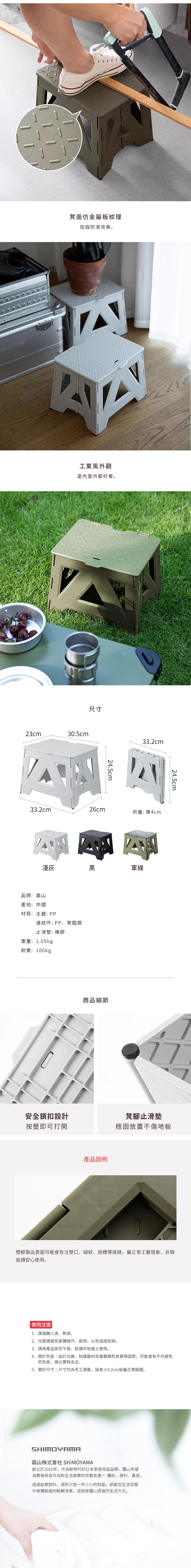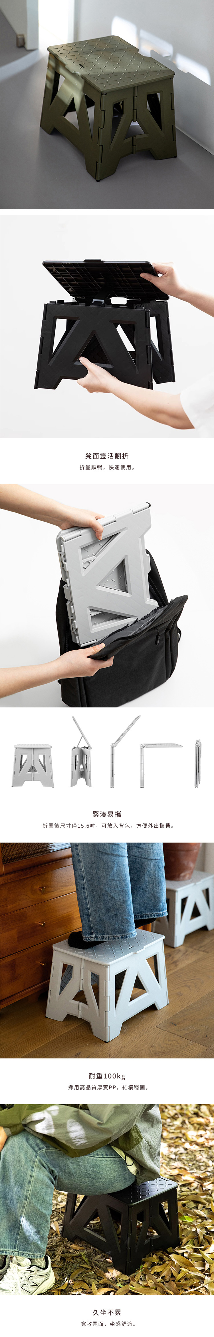 尺寸:[展開時整體尺寸]長33.2×寬26×高24.5cm、[展開時凳面尺寸]長30.5×寬23cm、[摺疊時]長33.2×寬4×高24.5cm