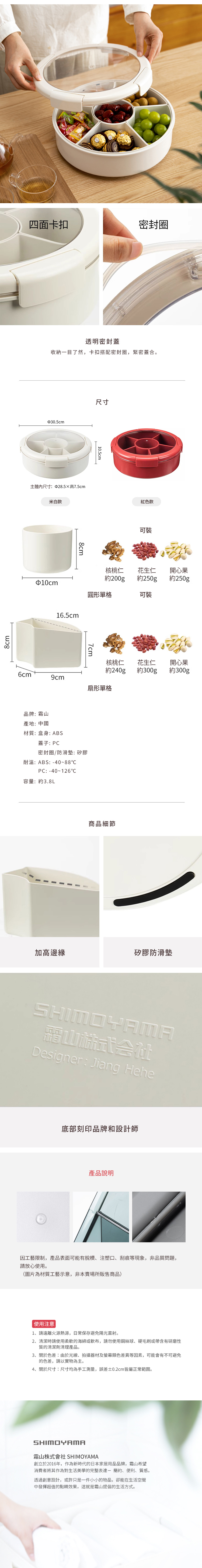 尺寸:[主體]直徑30.5×高10.5cm、[圓形單格]直徑10×高8cm、[扇形單格]長16.5×高8cm