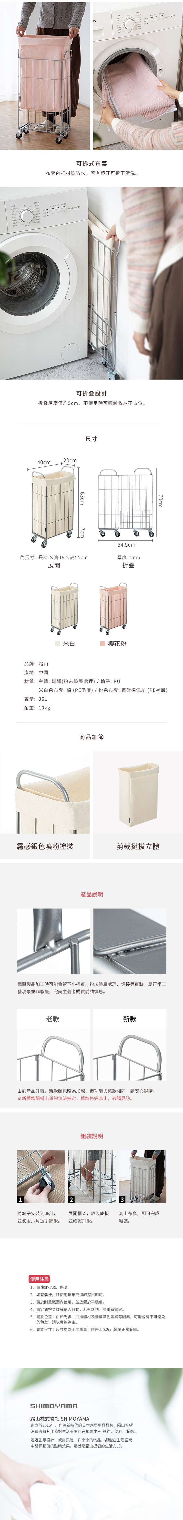 材質:[主體]碳鋼(粉末塗層處理)、[輪子]PU、[布套]棉(PE塗層)