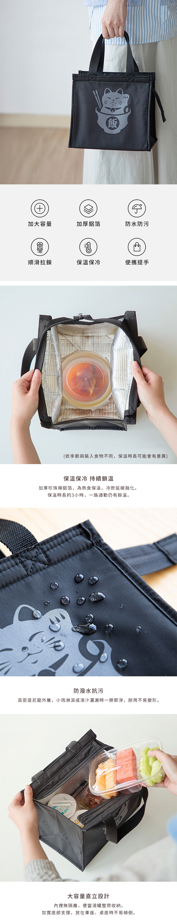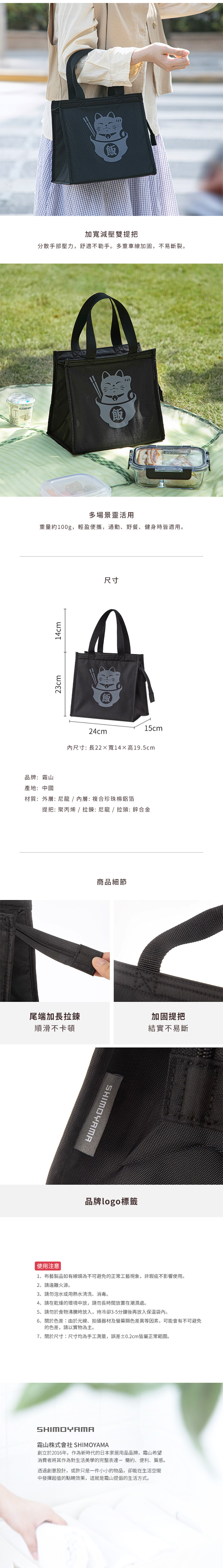 材質:[外層]尼龍、[內層]複合珍珠棉鋁箔、[提把]聚丙烯、[拉鍊]尼龍、[拉頭]鋅合金
