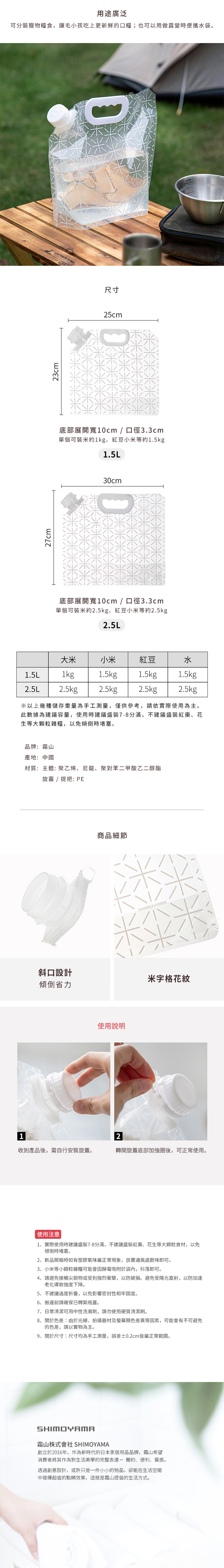 【日本霜山】手提直立式雜糧密封袋(1.5L)-15入