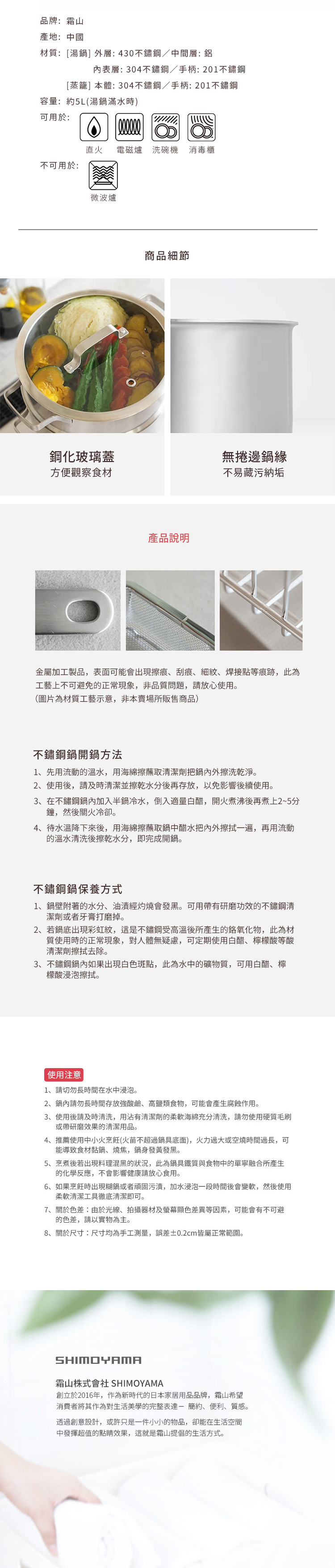 湯鍋材質:[外層]430不鏽鋼、[中間層]鋁、[內表層]304不鏽鋼、[手柄]201不鏽鋼