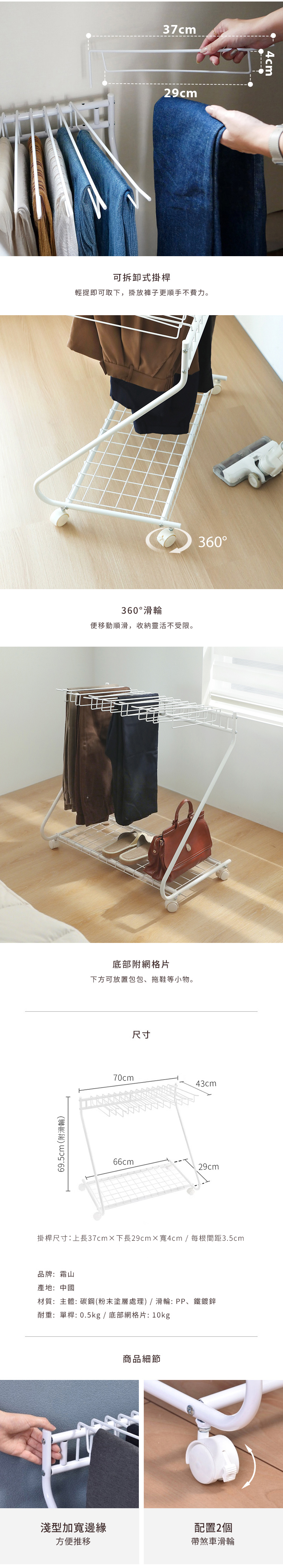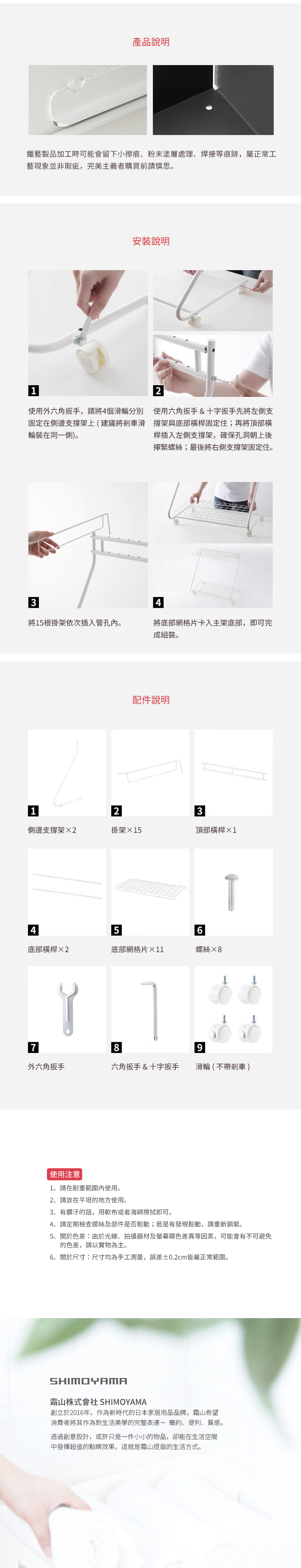 材質:[主體]碳鋼(粉末塗層處理)、[滾輪]PP、鐵鍍鋅