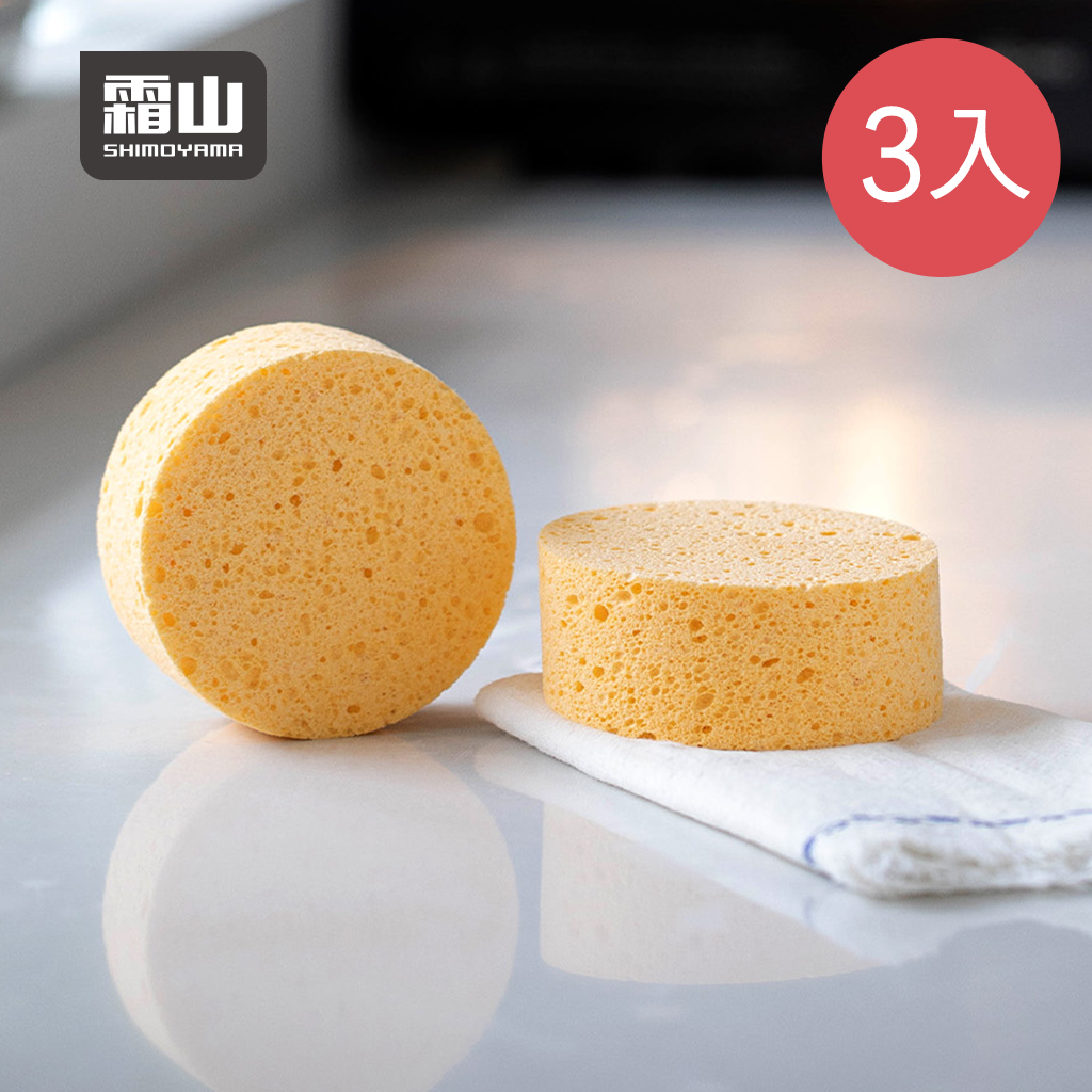 【日本霜山】電蒸箱/烤箱/蒸爐用圓形木漿棉去汙清潔海綿刷-3入