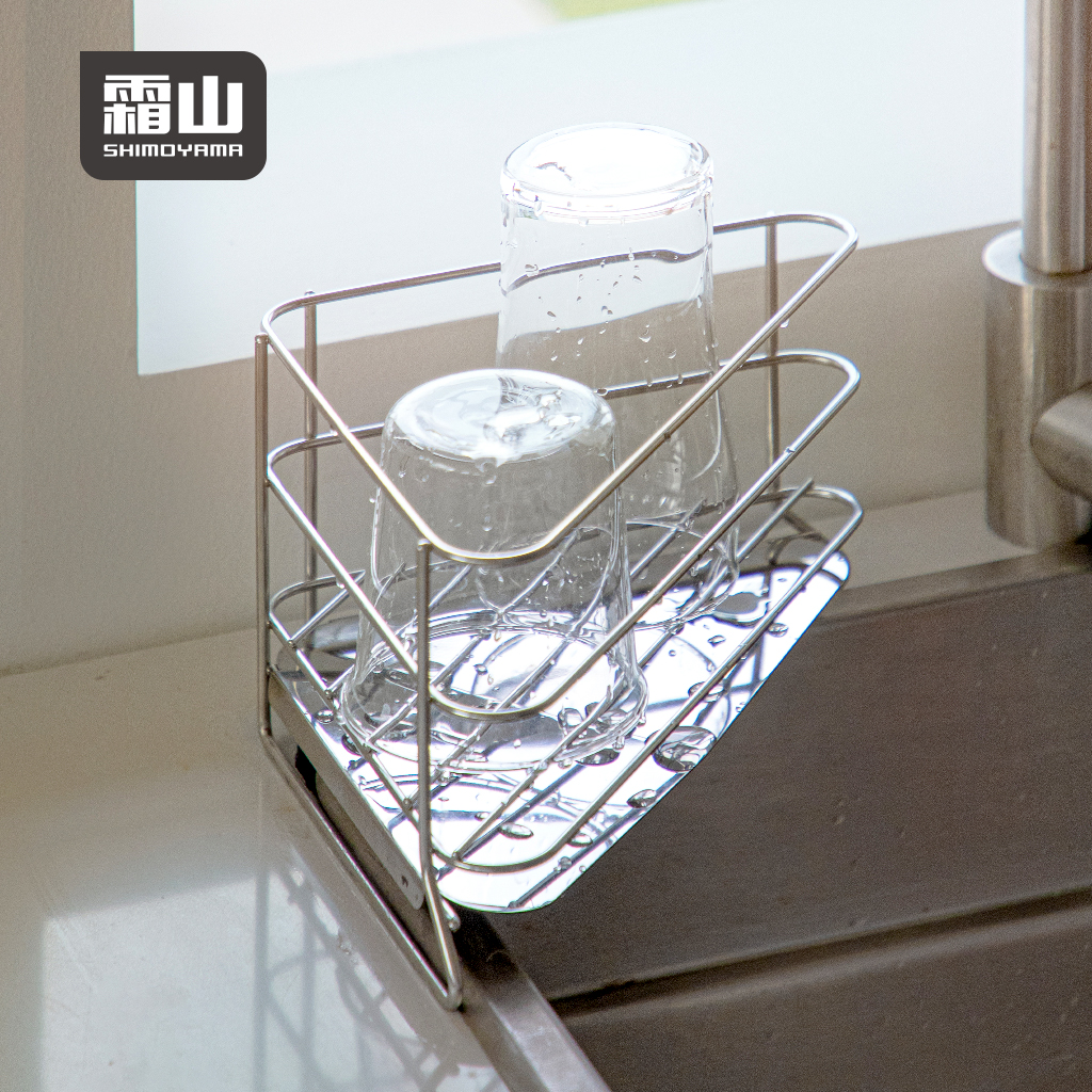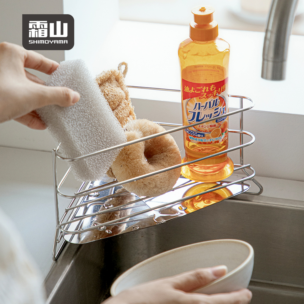 【日本霜山】水槽用304不鏽鋼三角形瀝水收納架/轉角置物架