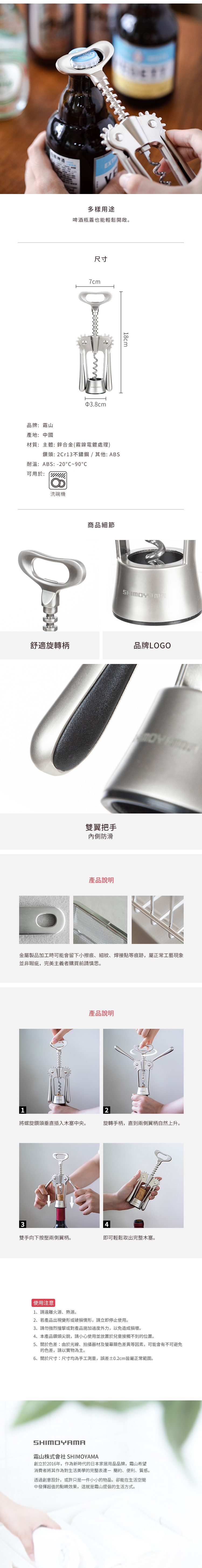 【日本霜山】鋅合金雙翼螺旋式紅酒開瓶器
