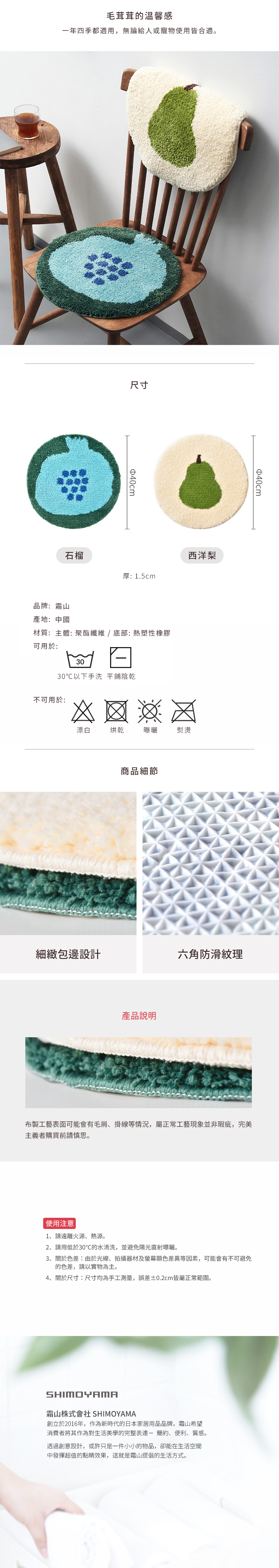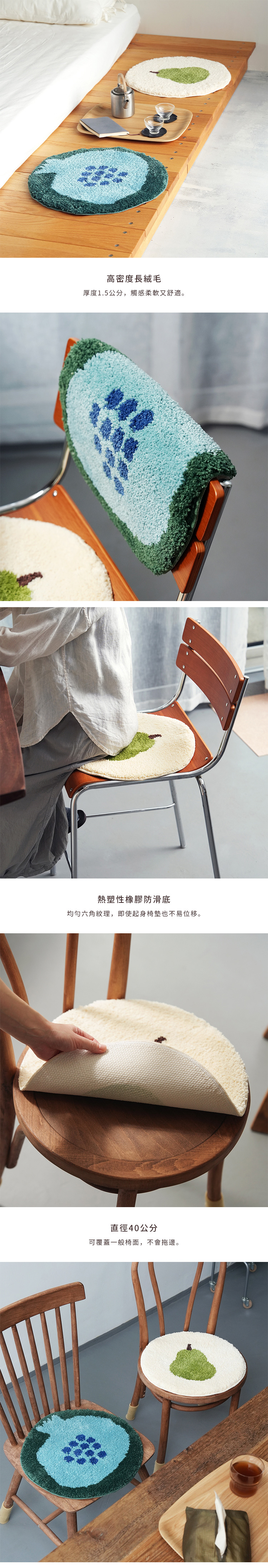 【日本霜山】插畫風圓形長絨毛椅墊/防滑坐墊(直徑40cm)-多色可選