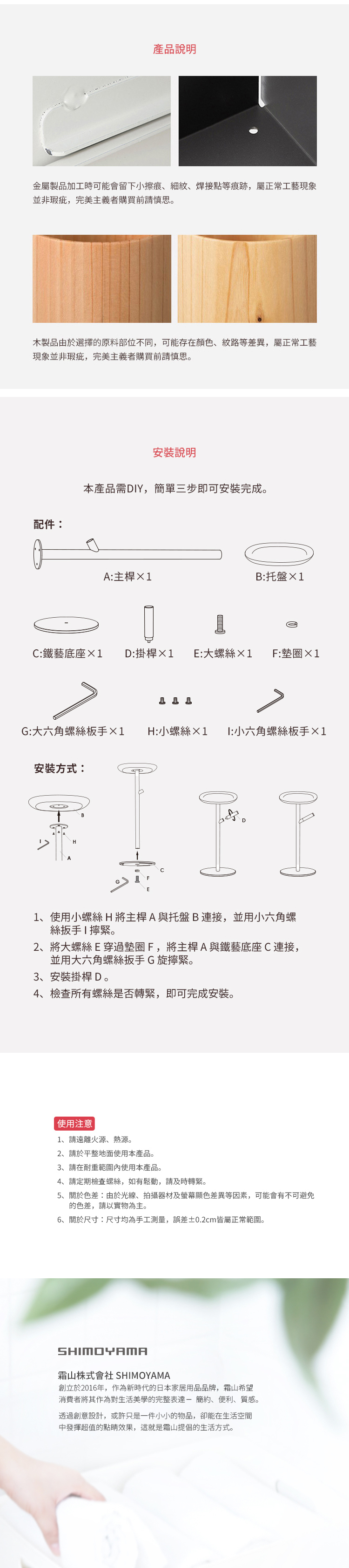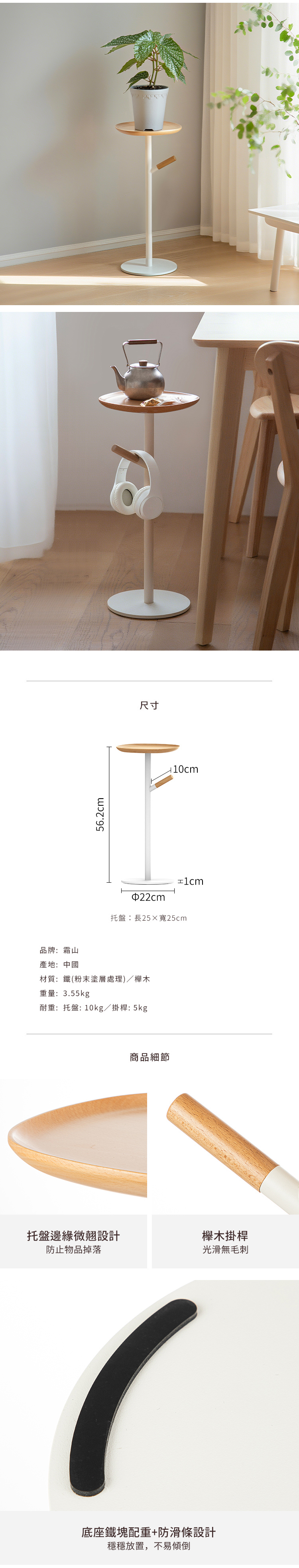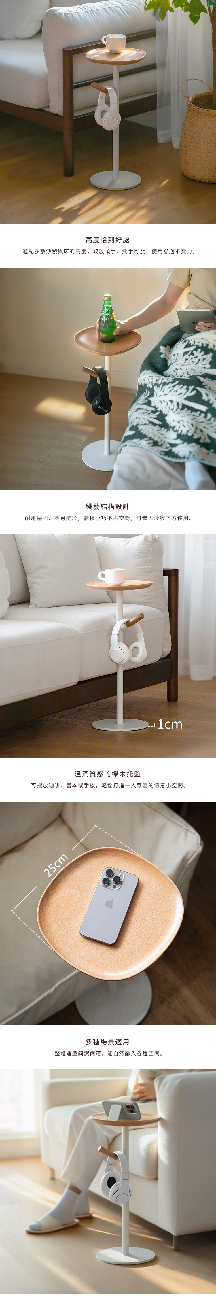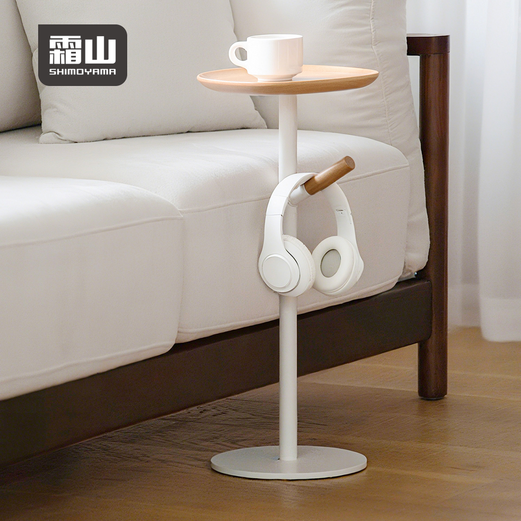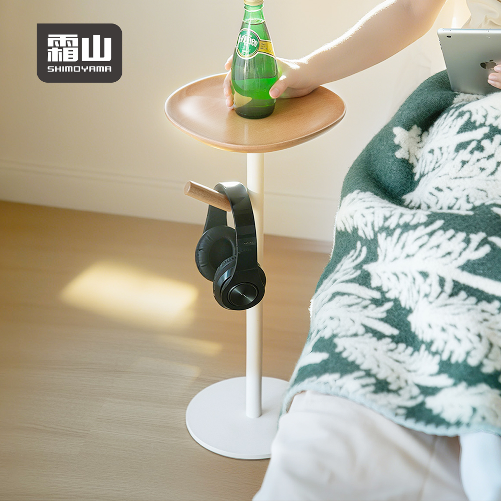 【日本霜山】北歐風鐵藝木質沙發邊桌/高腳小茶几(附掛桿)
