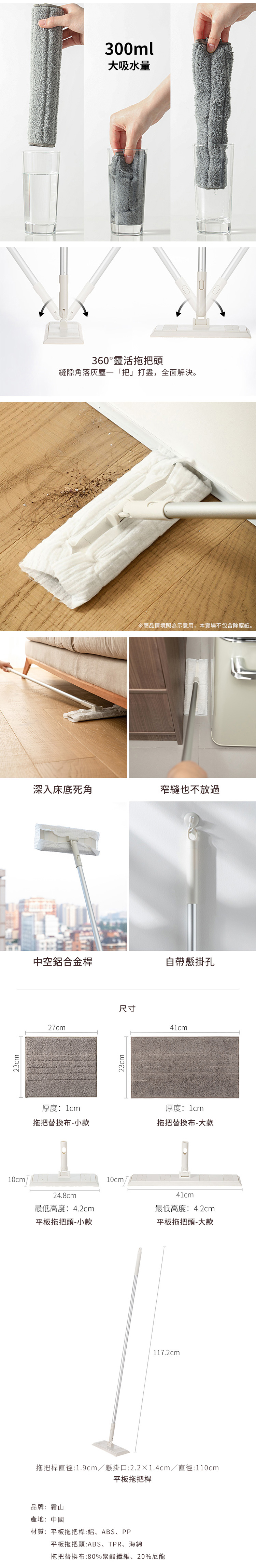 平板拖把頭:長41x寬10x高4.2cm