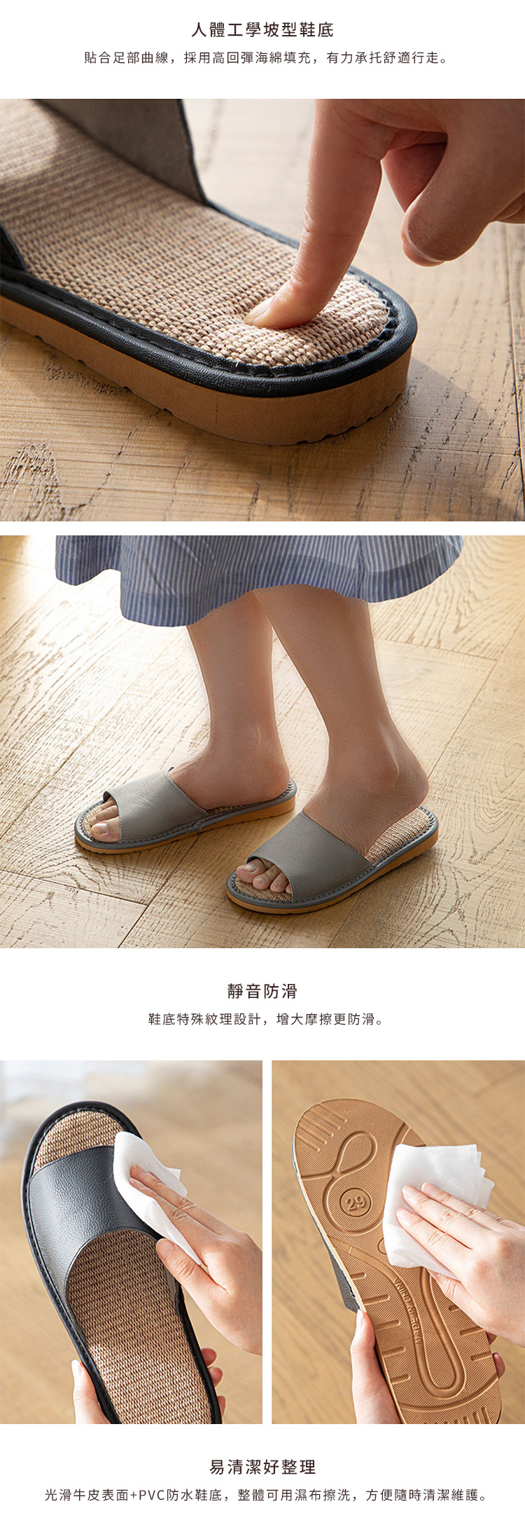 材質:[鞋面]頭層牛皮、[鞋墊]麻、[填充]高回彈海綿、[鞋底]PVC